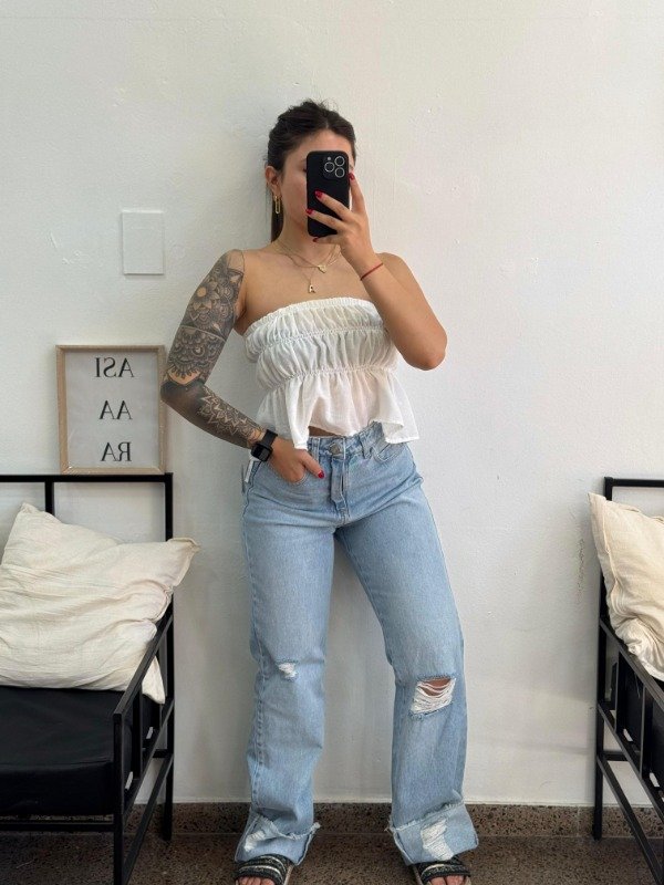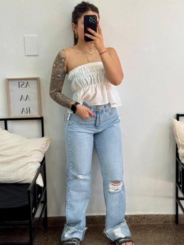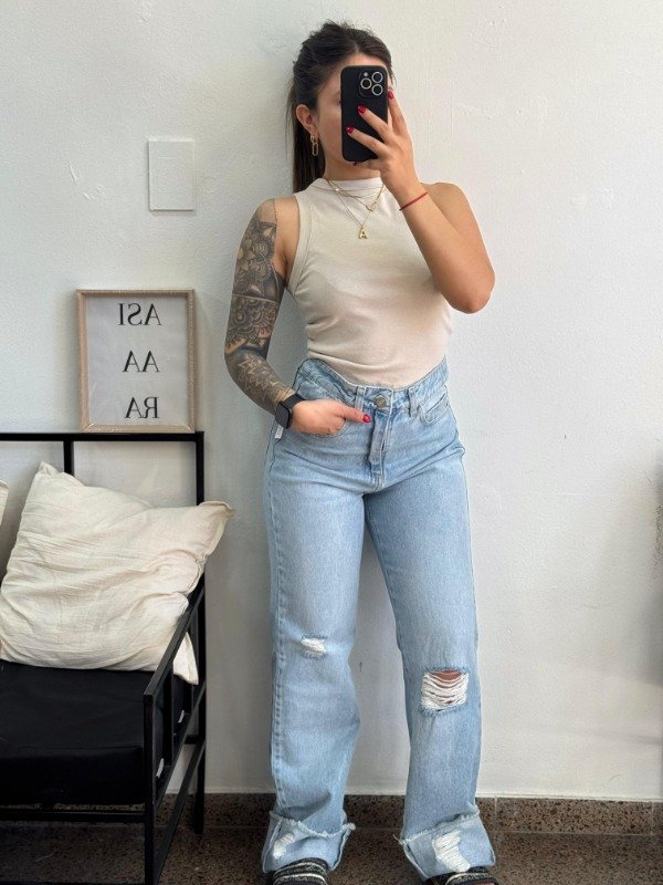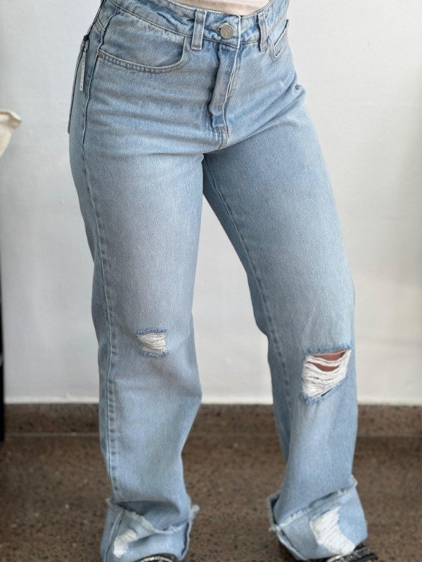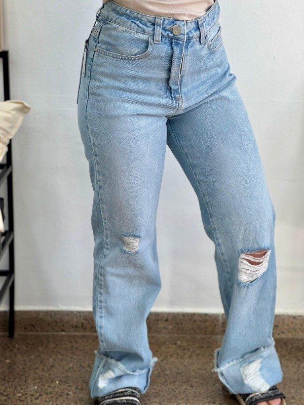 Jean recto con roturas discontinuas que le dan el toque mega original y canchero