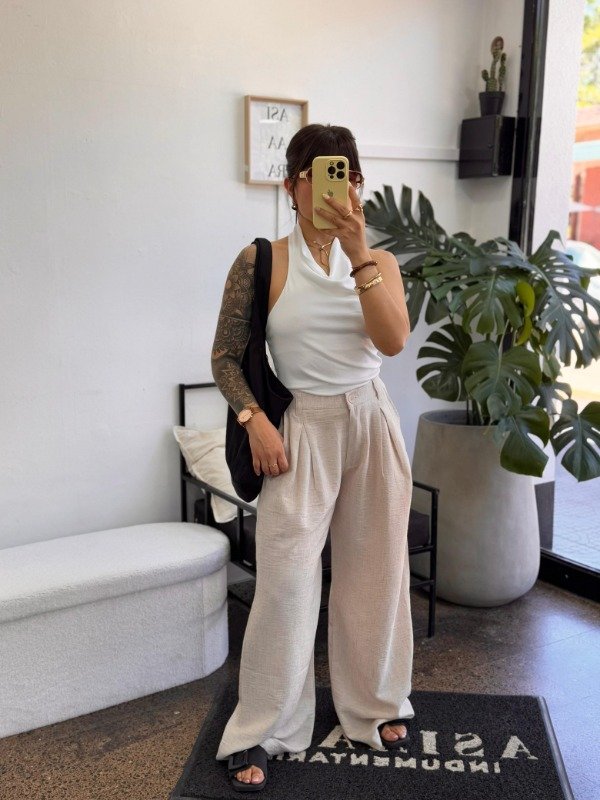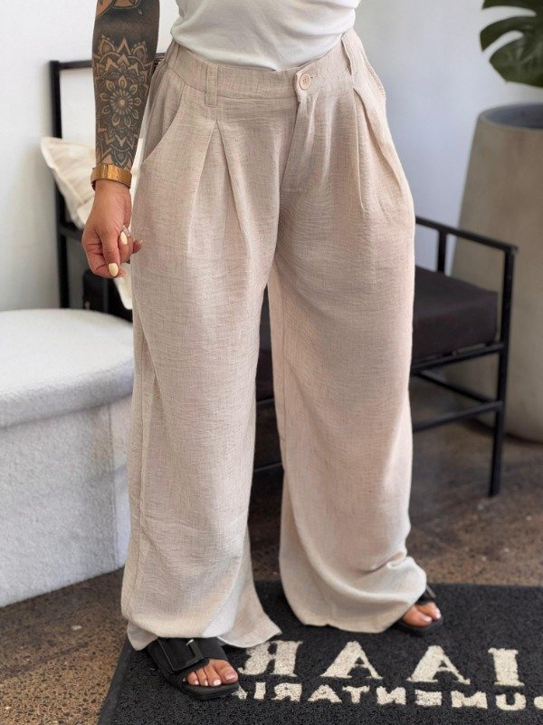 Pantalón tela cey,con elástico en la cintura y bolsillos