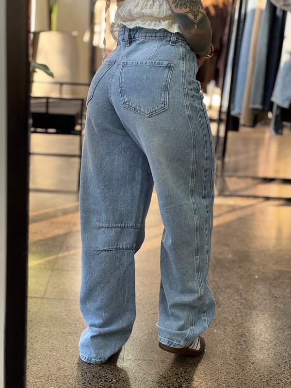 Baggy tiro alto de Jean rígido mega liviano con un calse INCREÍBLE